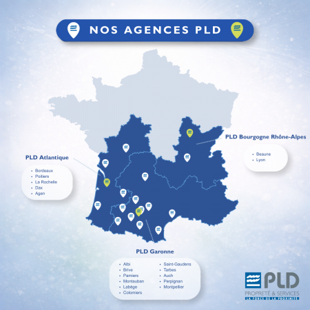 » PLD Garonne, filiale historique avec ses 11 agences en Occitanie : Albi, Brive, Pamiers, Montauban, Labège, Colomiers, Saint-Gaudens, Tarbes, Auch, Perpignan, Montpellier